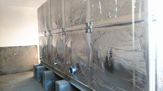 此水箱外圍為鋁箔布橡塑保溫,客戶在找到我們時(shí)根本不了解水箱保溫情況,只告訴我們水箱是在學(xué)校用,供學(xué)校學(xué)生用水。水溫要保存好才行。經(jīng)過我們的了解,我公司向客戶提供使用玻璃鋼材質(zhì),外加橡塑保溫。水箱材質(zhì)用水既安全、衛(wèi)生又耐用,用個(gè)十多年沒問題,而且橡塑保溫價(jià)格便宜,水溫在24小時(shí)之內(nèi)能保持10-30度左右是沒有問題的