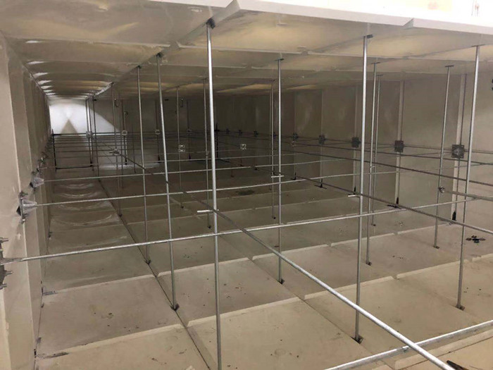 玻璃鋼水箱內(nèi)部會有一些不銹鋼橫槽在里面,這些鋼筋擺放的位置不同,有的橫放、有的斜放,有的甚至是豎立的一根根柱子。玻璃鋼水箱內(nèi)部有一根主拉筋,這種主拉筋的作用是水箱不易變形。大家知道水箱承受的重量是很大的,如果沒有其他的支撐,水箱就會變形,所以需要使用鋼筋來起到支撐的作用,大型的水箱間距會頻繁一點。斜筋的作用是為了分擔主拉筋的一些壓力,主柱是為了起到支撐的作用,為了頂住頂板,防止塌陷。拉筋簡單來說就是拉兩邊的水箱板的,為了固定水箱,水箱里的水灌滿了水箱不會漲破,對水箱起著重要作用。如果只用水箱板和膠條組成我們需要的水箱,雖然不滲水了,但是還不能盛水。因為盛水之后水箱會承受一個向外的張力,要加上拉筋系統(tǒng)受力,否則玻璃鋼水箱很容易撐壞。拉筋系統(tǒng)有圓鋼,內(nèi)外拉筋板,對拉螺栓緊固。這樣玻璃鋼水箱就可以裝水了。