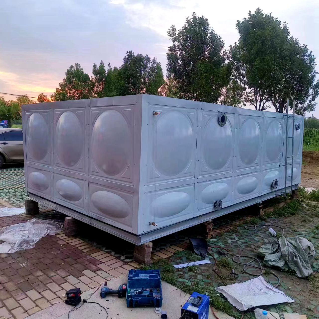 我司承接的山東省濱州市惠民縣御龍灣小區(qū)樓頂22.5立方鍍鋅鋼板保溫水箱安裝完成。此水箱為消防水箱,因安裝位置在樓頂,考慮安裝師傅的安全問題,因此采用整體組裝好后,吊裝到樓頂。僅用一天的時間安裝試水完成。鍍鋅鋼板水箱具有重量輕、造價低、安裝簡單、用途廣等優(yōu)點。鍍鋅鋼板水箱有空氣過濾及檢查清洗人孔、加鎖裝置,鍍鋅鋼板水箱耐腐蝕,反射在陽光吸收熱量,內部不易滋生藻類。