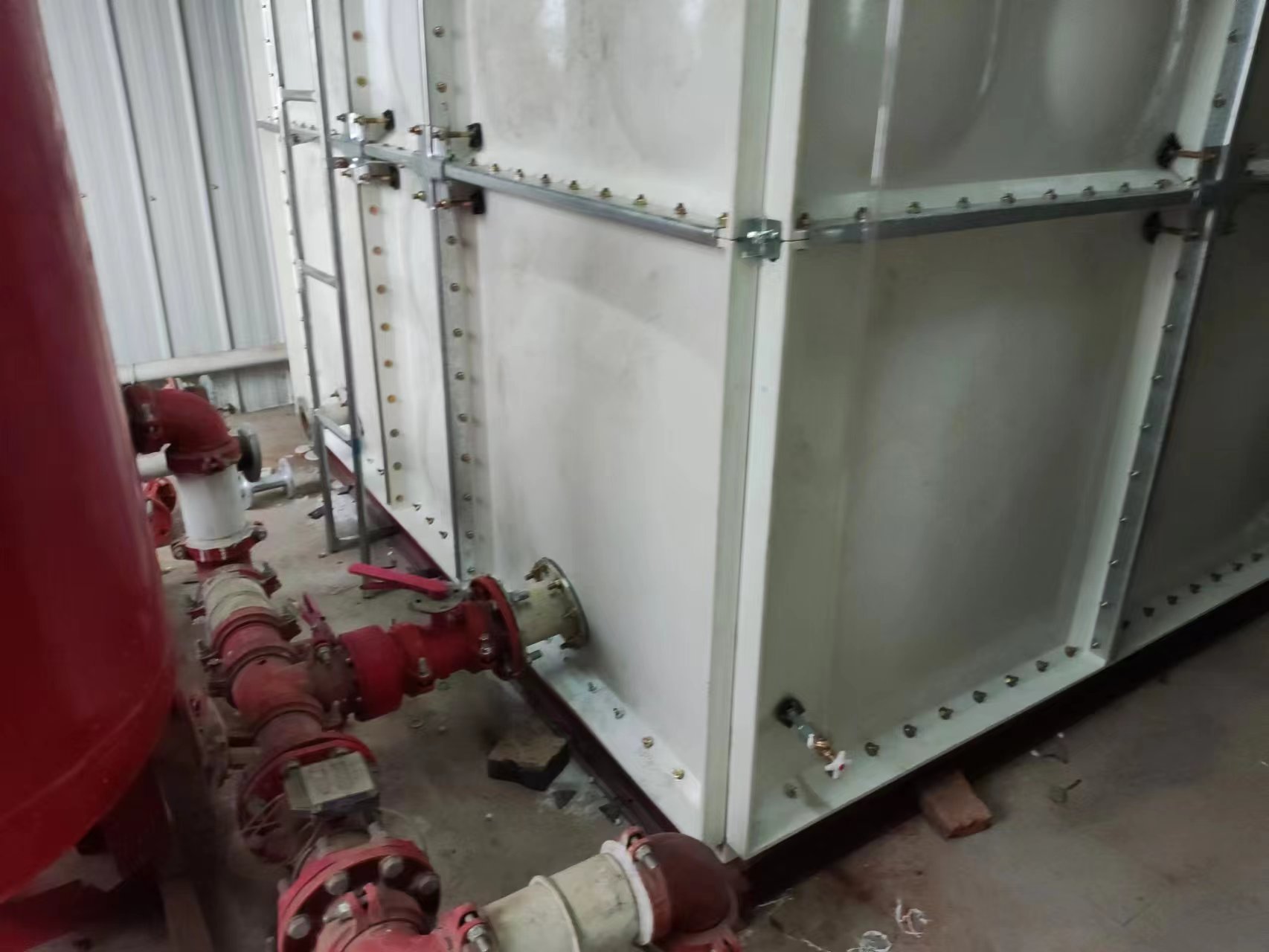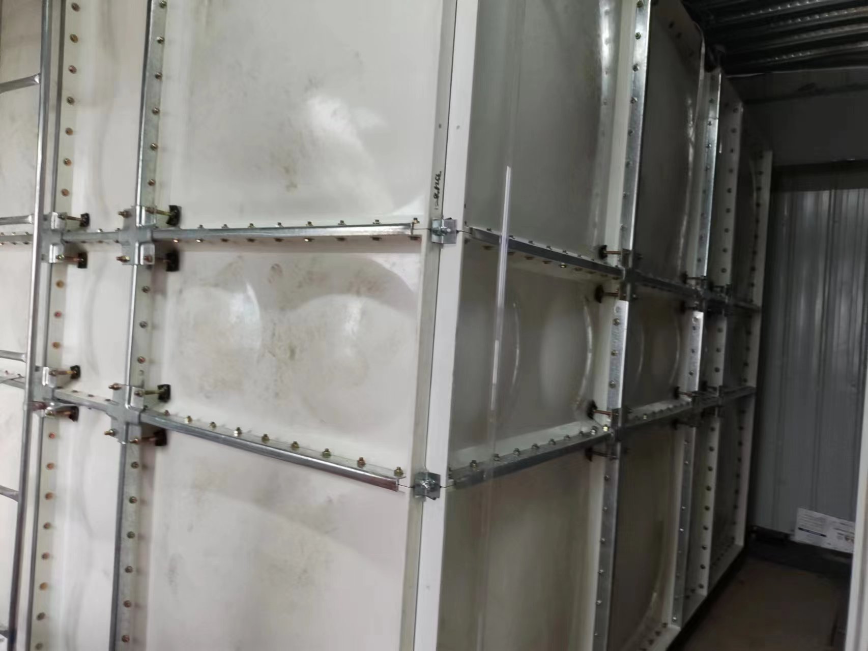 我司承接的山東省德州市平原縣紡興纖維廠地震災后重建項目,21.9立方SMC玻璃鋼消防水箱已經(jīng)安裝試水完成。SMC組合式玻璃鋼水箱是一種普遍采用的儲水方式。是由SMC單元板現(xiàn)場組裝而成的一種水箱。單元板用SMC(sheet moulding compound)片材在高溫高壓下模壓成型,水箱內(nèi)采用加強式支撐,其鋼配件選用熱鍍鋅件和不銹鋼件均可。板塊厚度的選取依據(jù)板塊所受的壓力和所處的位置。有5mm、8mm、10mm、12mm、14mm、16mm等。