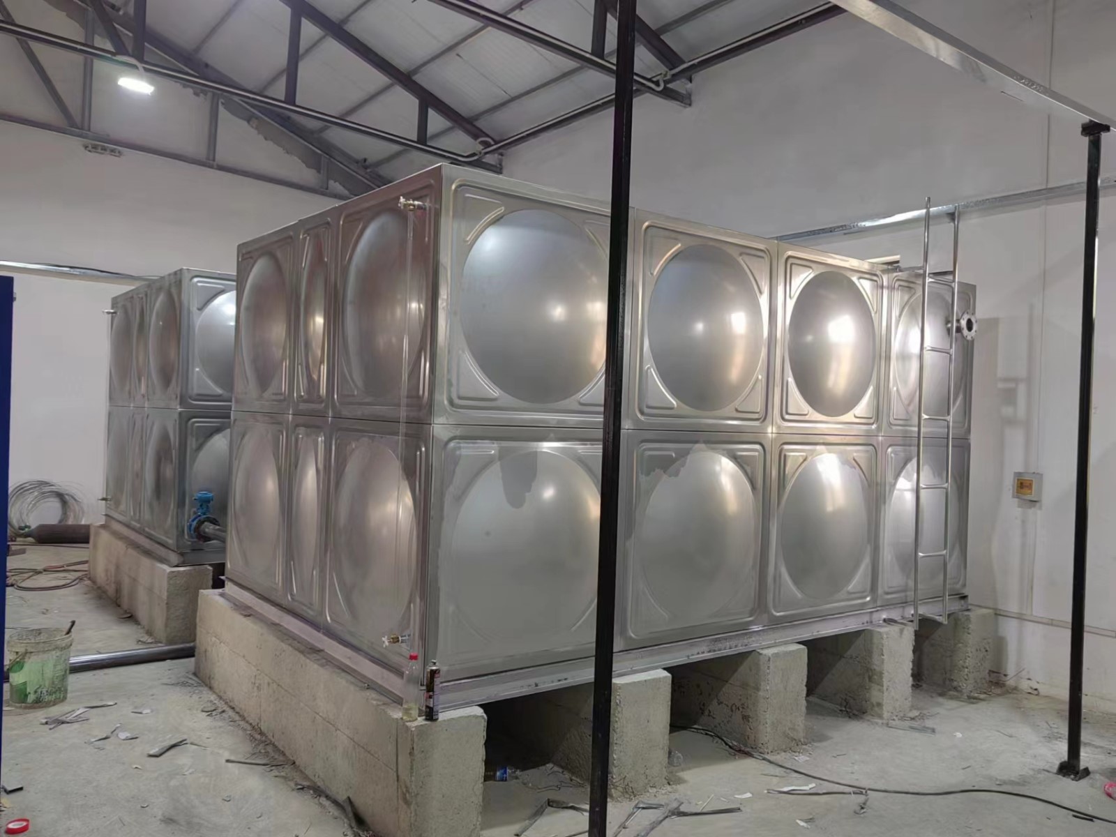 不銹鋼水箱施工方便快捷:標準沖壓板塊1000×1000、1000×500、500×500mm隨意裝配現(xiàn)場組裝焊接,無需吊裝設備。