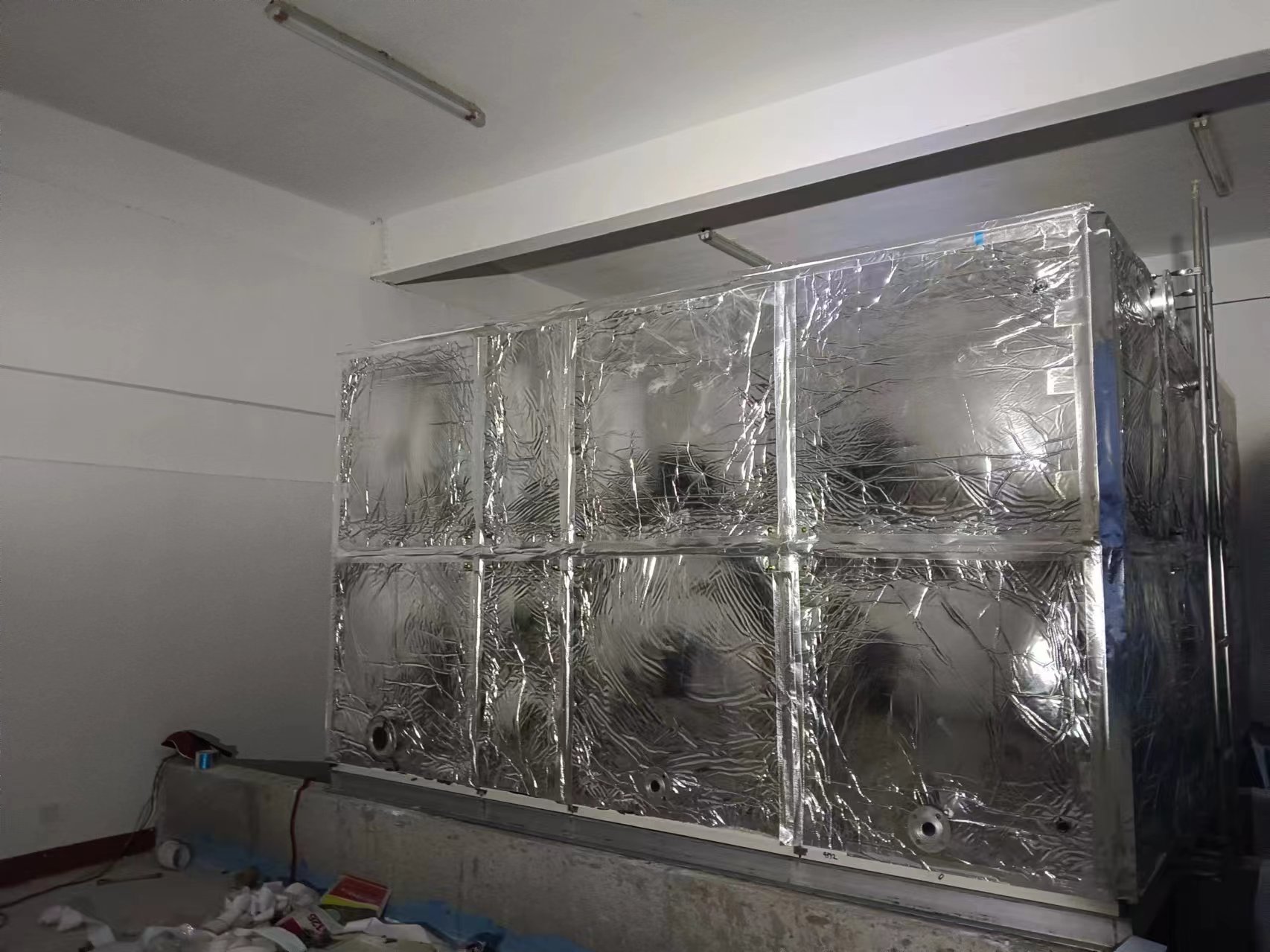 我司承接的山東省菏澤市東明縣春明中學(xué)消防水箱項目,已安裝試水完畢。玻璃鋼水箱整體由好的SMC水箱板拼裝而成,造價低。此水箱內(nèi)部采用SMC玻璃鋼水箱,外部采用橡塑保溫外加201外殼,起到良好的保溫效果及完美的外觀。