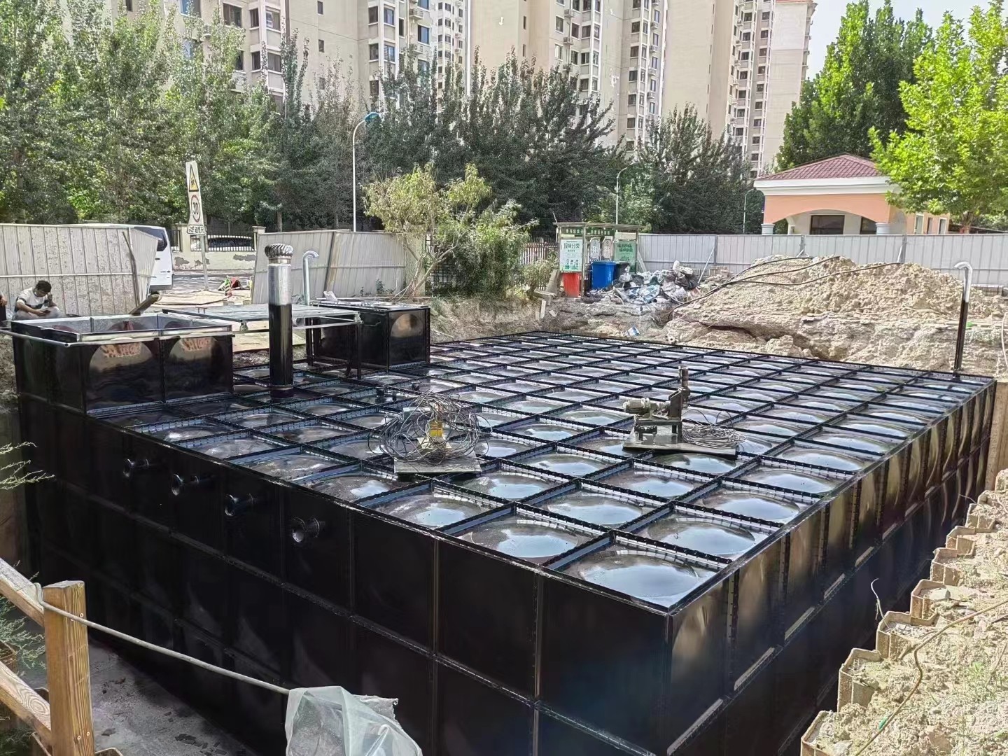 山東騰翔地埋式箱泵一體化由裝配式不銹鋼復合水箱和智慧型消防泵房組合而成的,水箱為不銹鋼復合板材,大模塊裝配式,箱體內壁為SUS304食品級不銹鋼材質,水質;內部有專用強化拉筋,強度高。地埋式泵房為熱鍍鋅大模塊板材,裝配式,內部門架式鋼結構,整體熱鍍鋅,抗腐蝕,承載能力強。整體式泵房里放置控制柜、除濕機,消防泵等配套設備。泵房采用24h無動力通風、設有排水設施、設薄型防火涂料可滿足耐火等級二級。我們采用工業級除濕機,全自動運行,泵房內部干燥;水泵采用立式泵,干式安裝方便檢修,自灌式吸水方式,符合相關規范要求;控制柜嚴格按照新消規GB50974-2014的要求,配置雙電源,運行數據可記錄調用。管道及閥門均采用卡箍連接,安裝方便,連接出水口即可使用,配件符合標準。