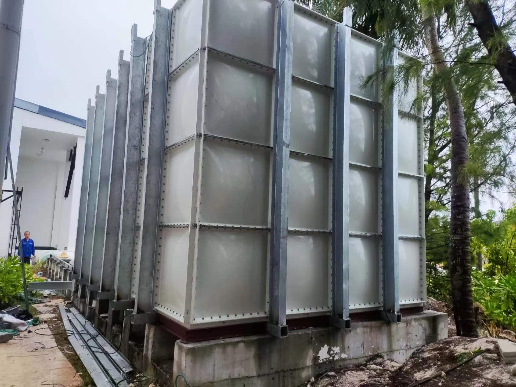 我司承接的外貿(mào)項(xiàng)目,出口到馬爾代夫的玻璃鋼及不銹鋼水箱,目前正在安裝中。此水箱在廠內(nèi)木箱打包集裝箱到天津港后到馬爾代夫。公司從發(fā)貨到目前的安裝一直都是高標(biāo)要求,并派出多名安裝技術(shù)人員現(xiàn)場跟進(jìn)指導(dǎo),客戶非常滿意頻頻給出高評!