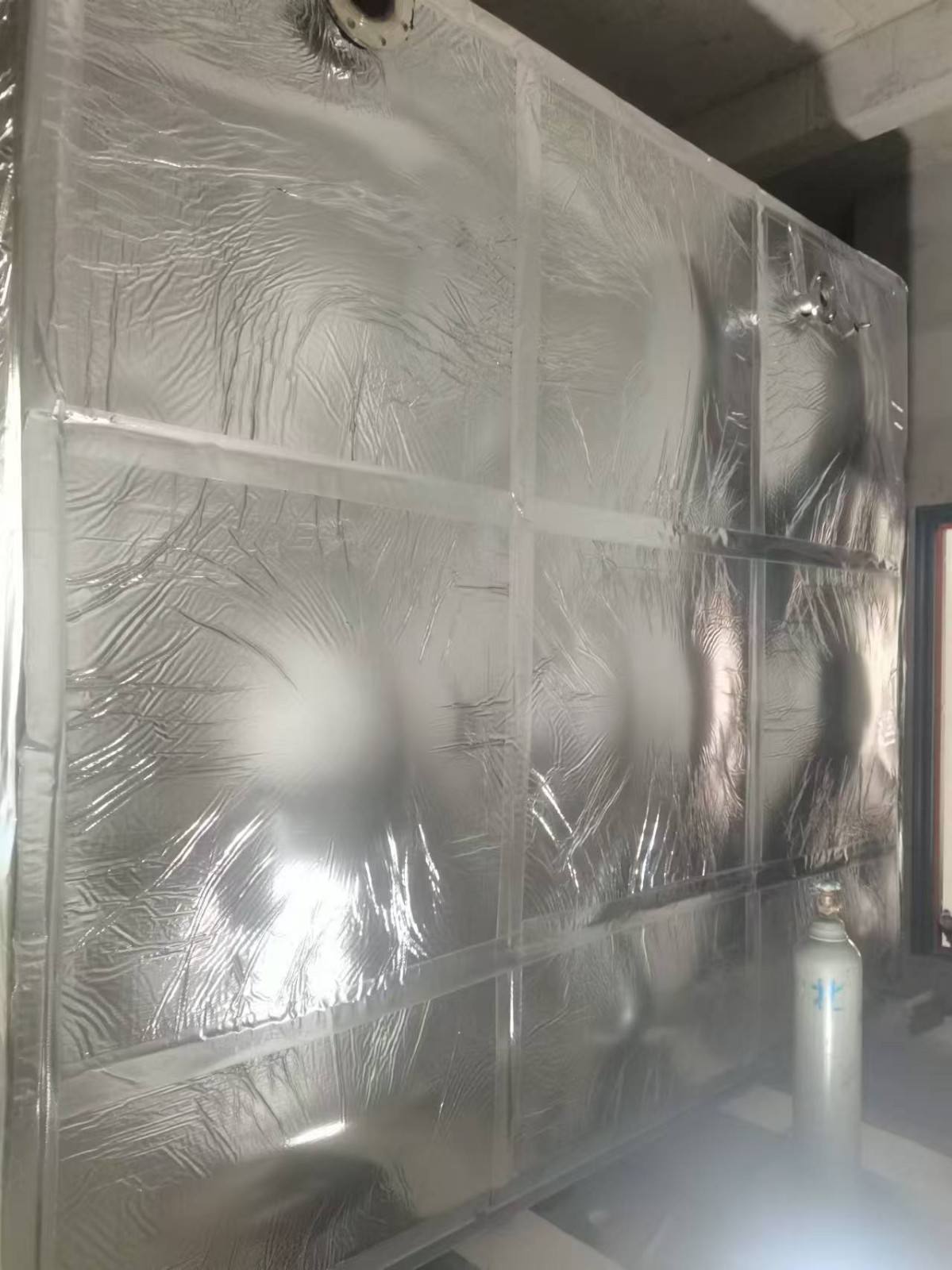 我司承接的山東省濱州市濱城區西海家苑不銹鋼保溫水箱項目現已完工。水箱為不銹鋼304材質,外表做了橡塑鋁箔布保溫層,鋁箔橡塑保溫材料為閉泡式結構,且表面平整光滑,所以外界空氣中的水汽很難滲透到材料之中,保冷保溫不必再添加隔汽層,從而獲得較佳的導熱系數,它的陰濕因子大于4.5×103,使它的整體既是保溫層又是防潮層。因此適用于多種防火要求較高的場所使用。