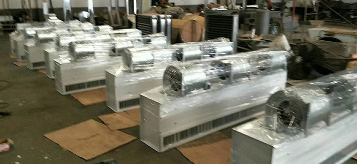 風(fēng)幕機有貫流式熱風(fēng)幕機和離心式熱風(fēng)幕機。